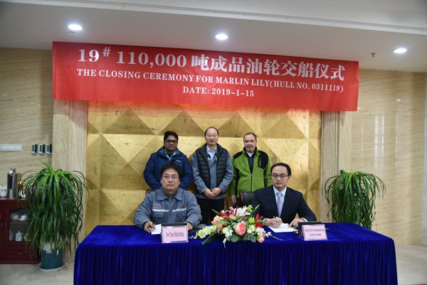 On January 15, 2019, the closing ceremony for No.19 111,000 DWT Oil Tanker was held at the meeting room on 8th floor of New Times Office Building. Our CEO Mr. Liu Haijin, Executive General Manger Mr. Zhang Yuyong and the representatives from the Owner attended this ceremony. The delivery documents for this ship were successfully signed by both parties.