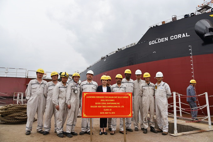 On May 15, 2019, No.1 208,000 DWT Bulk Carrier launched successfully from Drydock No.3. Main particulars of such type of vessel: LOA 299.95 m, LBP 294.40m, breadth mld. 50.00 m, depth mld. 24.90 m, design draft 16.10 m, scantling draft 18.4 m.